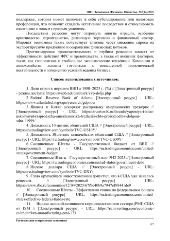 9. Глава крупнейшей инвесткомпании допустил, что в США уже началась рецессия. // [Электронный ресурс] - URL: https://www.rbc.ru/economics/12/04/2025/67f9e40b9a7947ef88441de9.