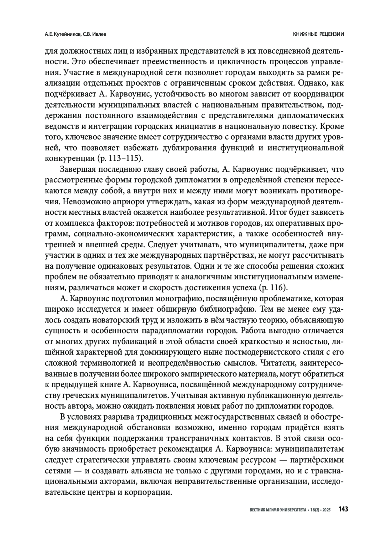 Рецензия на книгу: Karvounis A. M. City Diplomacy. An Introduction. London and New York: Routledge, 2025, 121 p. ISBN: 978-1-032-71633-6, DOI: 10.4324/9781003470908