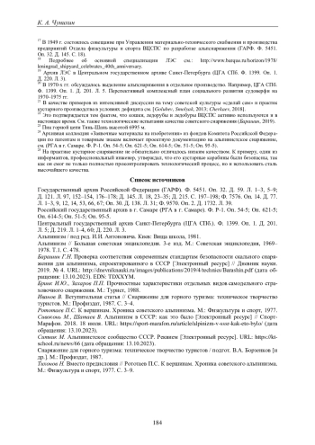 18. Maurer E. Al’pinizm as Mass Sport and Elite Recreation: Soviet Mountaineering Camps under Stalin // Turizm: the Russian and East European Tourist under Capitalism and Socialism / ed. by Anny Gorsuch and Diane Koenker. Ithaca (NY): Cornell University Press, 2006. P. 141-162.