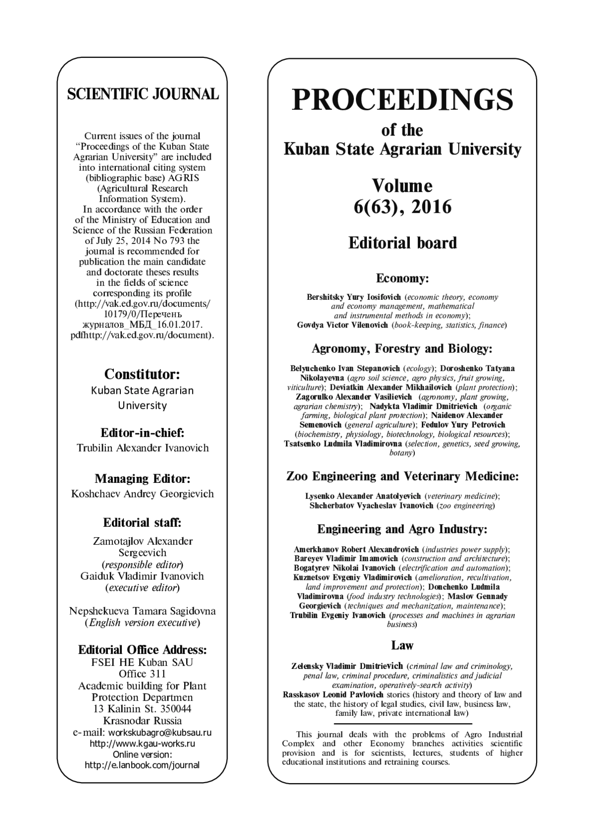 Приводятся данные по видовому составу жужелиц агроценозов ФГБНУ ВНИИБЗР в черте г. Краснодара. Исследовано 9 опытных участков, выявлено 12 преобладающих видов из 8 родов жужелиц. Основными критериями выбора агроценозов являлась пространственная близость участков, позволяющая проследить миграции жужелиц, разнообразие сельскохозяйственных культур и внесение в почву различных препаратов как химического, так и биологического происхождения. Описывается сезонная динамика активности карабидокомплекса. Проанализирован материал, собранный почвенными ловушками Барбера в 2016 году. Определено, что наибольшее видовое разнообразие отмечается в летний период. Преобладающими видами в весенний период являются Carabus exaratus, Carabus planus, Harpalus rufipes, Harpalus cupreus и Brachinus brevicollis, в летний период - Carabus planus, Carabus exaratus, Harpalus cupreus, Harpalus rufipes, Anchomenus dorsalis и Brachinus brevicollis, а в осенний период - Carabus planus, Carabus exaratus, Harpalus cupreus, Harpalus rufipes и Brachinus brevicollis. Для установления основного вектора перемещения жужелиц в агроландшафтах проведена обработка данных по динамике численности и обилию видов жужелиц. Установлены направления миграций массовых видов. Полученные данные имеют определенное значение для конкретизации представлений о фауне жужелиц агроценозов города Краснодара и могут быть использованы при составлении кадастров животного мира этого муниципального образования.