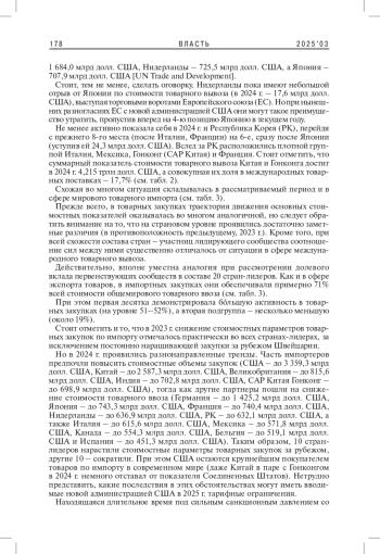 1. Гладков И.С. 2025. Мирохозяйственная динамика и международная торговля: новейшие тренды. - Власть. Т. 33. № 1. С. 167-171. EDN: WUAVEW