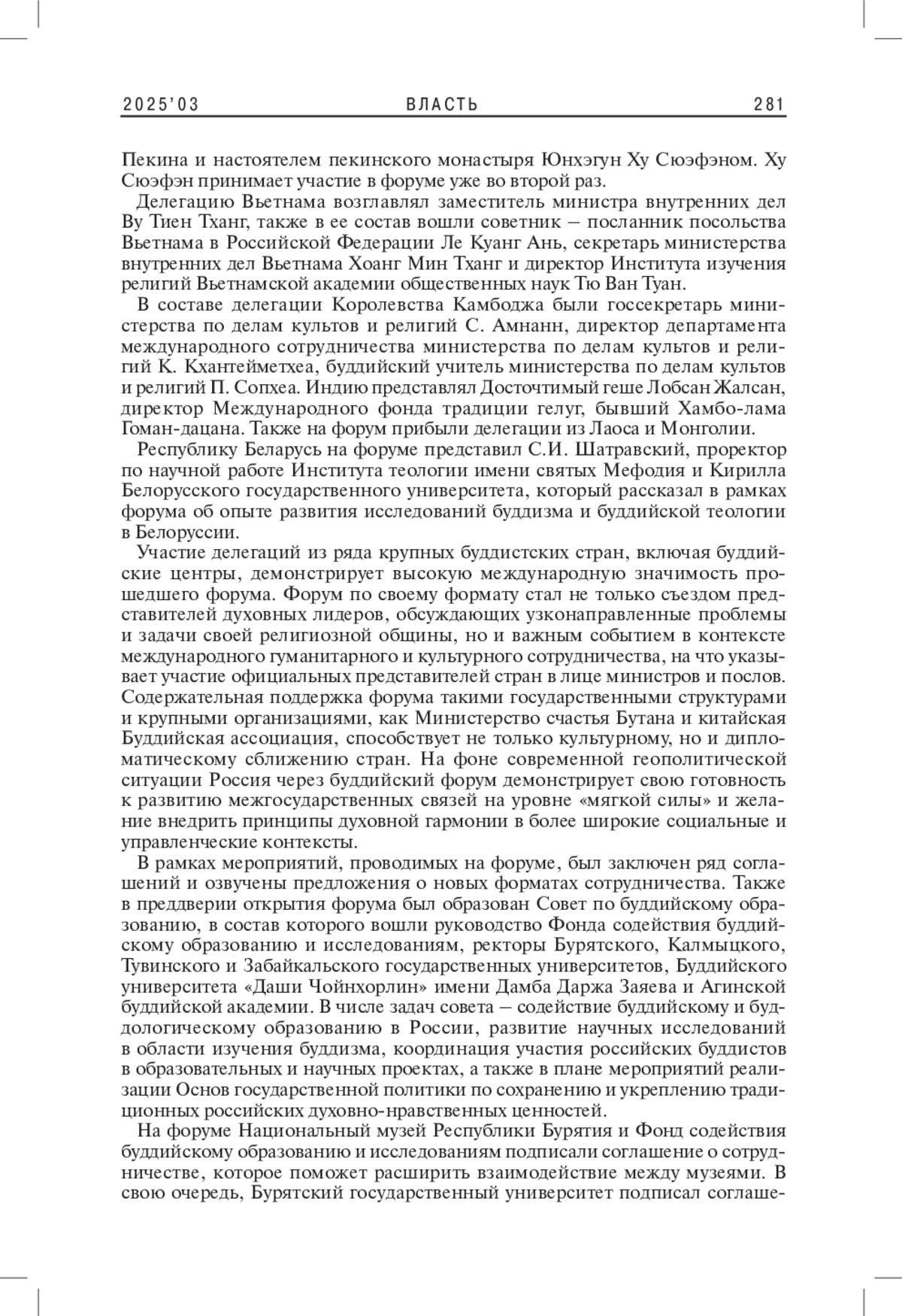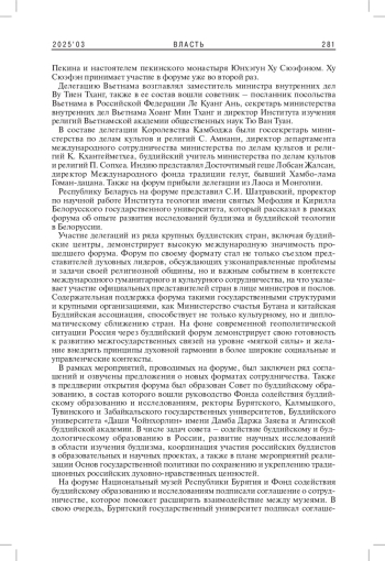 С 12 по 14 августа 2024 г. в г. Улан-Удэ (Республика Бурятия) прошел II Международный буддийский форум «Традиционный буддизм и вызовы современности». Он собрал более 3 000 участников из регионов России и 15 иностранных государств (Бангладеш, Беларусь, Бразилия, Бутан, Вьетнам, Индия, Камбоджа, Китай, Лаос, Монголия, Мьянма, Непал, Таиланд, Шри-Ланка, Япония).