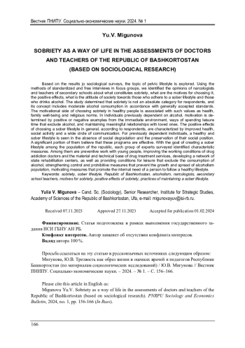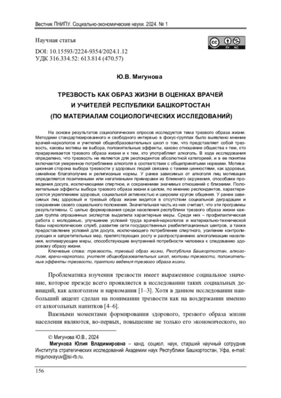 11. Белова Ю.Ю. Трезвый образ жизни: мотивы, роли, практики // Социологические исследования. - 2023. - № 1. - С. 82-94. EDN: XKUGCO
