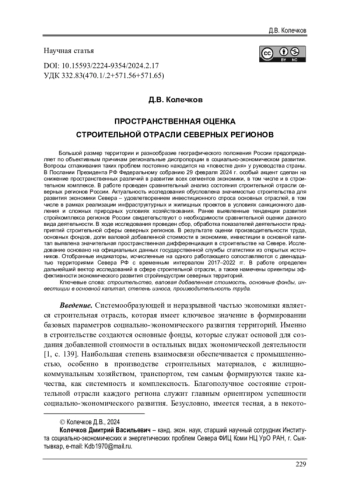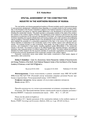 Статья: ПРОСТРАНСТВЕННАЯ ОЦЕНКА СТРОИТЕЛЬНОЙ ОТРАСЛИ СЕВЕРНЫХ РЕГИОНОВ (2024)