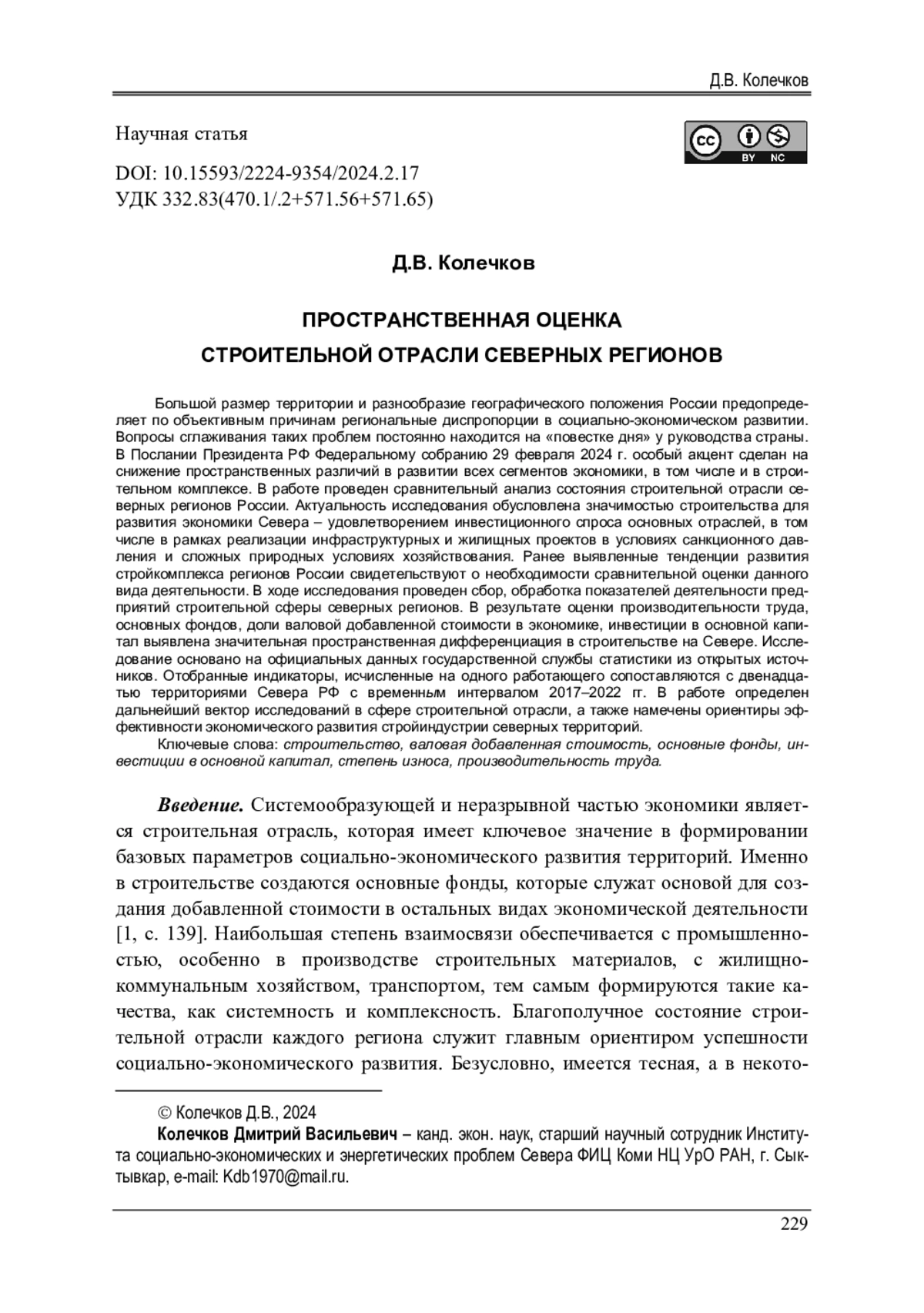 КОЛЕЧКОВ Д. В. ПРОСТРАНСТВЕННАЯ ОЦЕНКА СТРОИТЕЛЬНОЙ ОТРАСЛИ СЕВЕРНЫХ РЕГИОНОВ // ВЕСТНИК ПЕРМСКОГО НАЦИОНАЛЬНОГО ИССЛЕДОВАТЕЛЬСКОГО ПОЛИТЕХНИЧЕСКОГО УНИВЕРСИТЕТА. СОЦИАЛЬНО-ЭКОНОМИЧЕСКИЕ НАУКИ. 2024. № 2