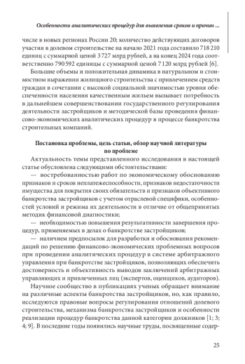 Цель настоящего исследования заключается в получении нового знания, способствующего развитию теории, методики и практики реализации процедур, применяемых в делах о банкротстве застройщика, и позволяющего повысить эффективность аналитических процедур в системе арбитражного управления строительных компаний, привлекающих средства участников долевого строительства.