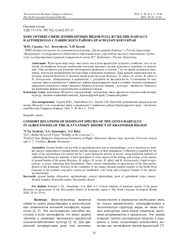 Статья: Консортные связи доминантных видов рода жужелиц Harpalus в агроценозах Славянского района Краснодарского края (2024)