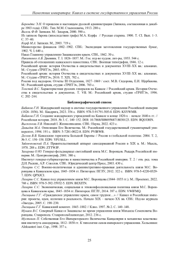 29. Лисицына Г.Г. “Гражданское управление краем, самое трудное…” // Кавказ и Российская империя: проекты, идеи, иллюзии и реальность. Начало XIX - начало XX вв. СПб.: Изд-во журнала “Звезда”, 2005. С. 190-230.