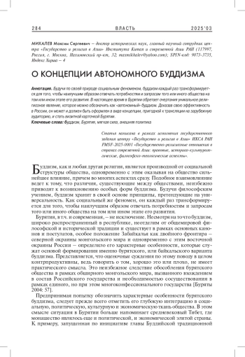 МИХАЛЕВ М. С. О КОНЦЕПЦИИ АВТОНОМНОГО БУДДИЗМА // ВЛАСТЬ. 2025. ТОМ 33 № 3