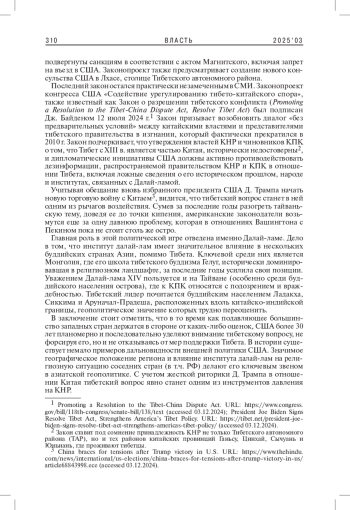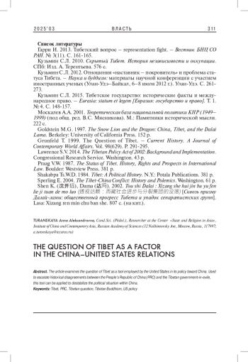 ТУРАНСКАЯ А. А. ТИБЕТСКИЙ ВОПРОС КАК ФАКТОР КИТАЙСКО-АМЕРИКАНСКИХ ОТНОШЕНИЙ // ВЛАСТЬ. 2025. ТОМ 33 № 3