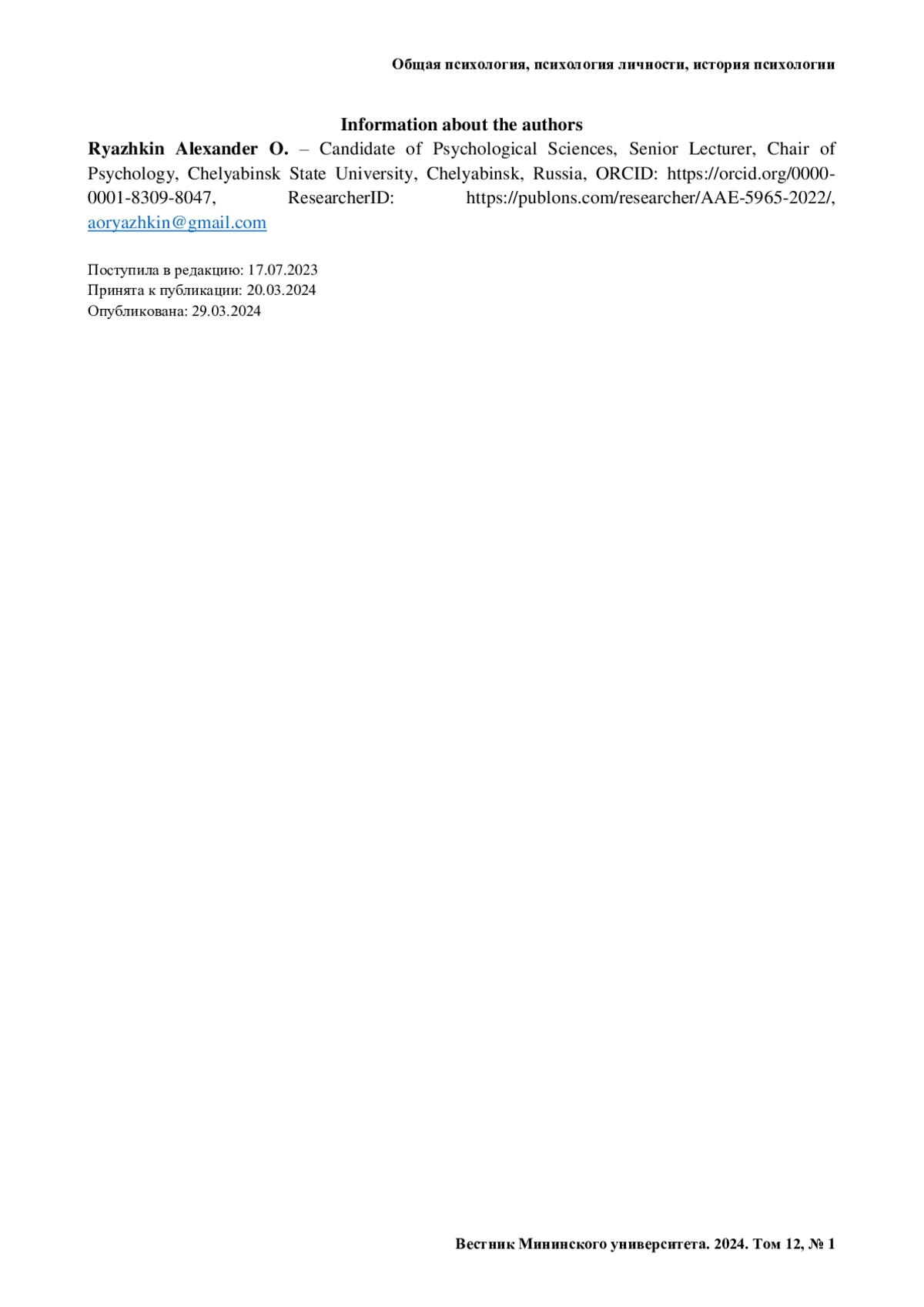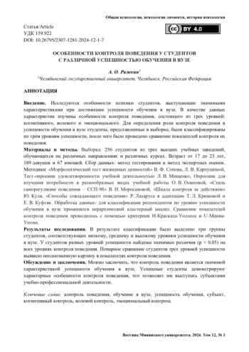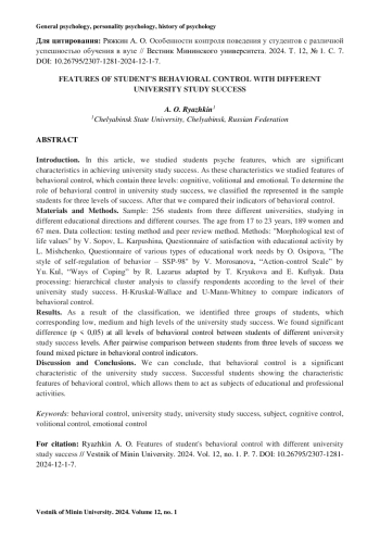 РЯЖКИН А. О. ОСОБЕННОСТИ КОНТРОЛЯ ПОВЕДЕНИЯ У СТУДЕНТОВ С РАЗЛИЧНОЙ УСПЕШНОСТЬЮ ОБУЧЕНИЯ В ВУЗЕ // ВЕСТНИК МИНИНСКОГО УНИВЕРСИТЕТА. 2024. ТОМ 12, № 1