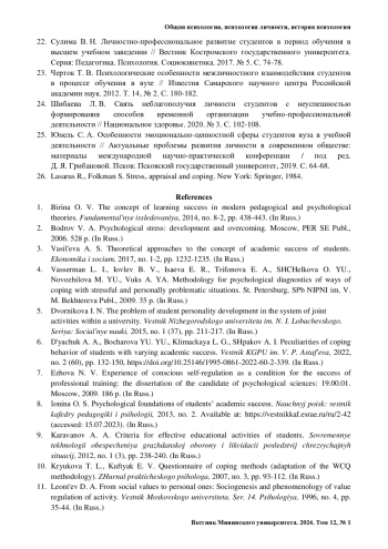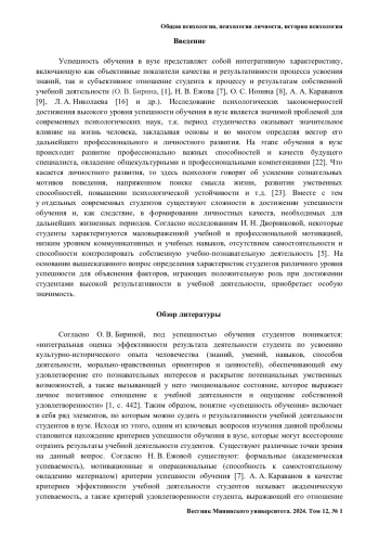 Статья: Особенности контроля поведения у студентов с различной успешностью обучения в вузе (2024)