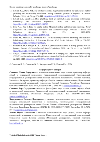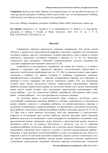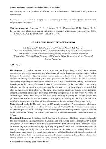 СЕМЕНОВА Л. Э., СЕМЕНОВА В. Э., КАРПУШКИНА Н. В., КОНЕВА И. А. ВОЗРАСТНАЯ СПЕЦИФИКА ВОСПРИЯТИЯ ФАББИНГА // ВЕСТНИК МИНИНСКОГО УНИВЕРСИТЕТА. 2024. ТОМ 12, № 1