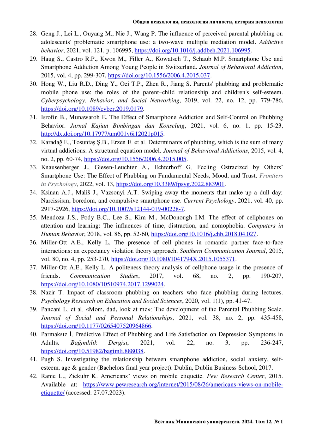 Ключевые фразы: фаббинг, смартфон, восприятие фаббинга, фаббер, фабби, ЮНОШЕСКИЙ ВОЗРАСТ, зрелый возраст