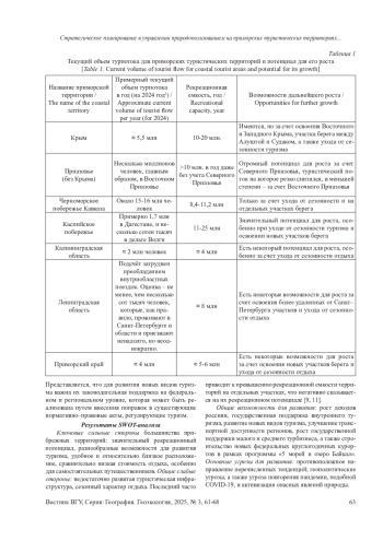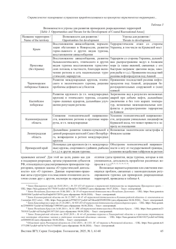 КУЛАКОВСКАЯ В. А., САНИН А.Ю. СТРАТЕГИЧЕСКОЕ ПЛАНИРОВАНИЕ В УПРАВЛЕНИИ ПРИРОДОПОЛЬЗОВАНИЕМ НА ПРИМОРСКИХ ТУРИСТИЧЕСКИХ ТЕРРИТОРИЯХ: ПРОБЛЕМЫ И ПЕРСПЕКТИВЫ // ВЕСТНИК ВОРОНЕЖСКОГО ГОСУДАРСТВЕННОГО УНИВЕРСИТЕТА. СЕРИЯ: ГЕОГРАФИЯ. ГЕОЭКОЛОГИЯ. 2025. № 3