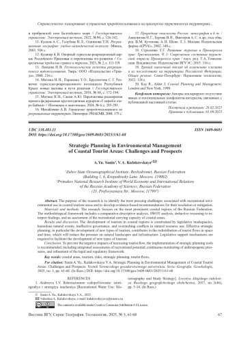 Статья: СТРАТЕГИЧЕСКОЕ ПЛАНИРОВАНИЕ В УПРАВЛЕНИИ ПРИРОДОПОЛЬЗОВАНИЕМ НА ПРИМОРСКИХ ТУРИСТИЧЕСКИХ ТЕРРИТОРИЯХ: ПРОБЛЕМЫ И ПЕРСПЕКТИВЫ (2025)