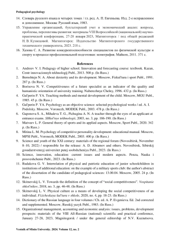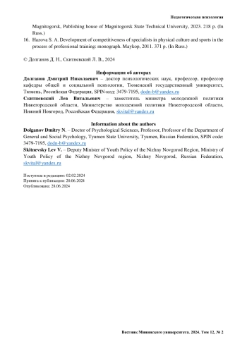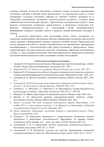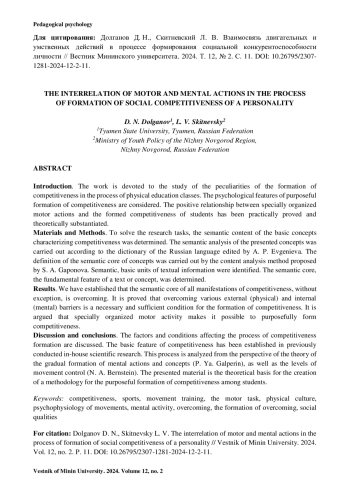 ДОЛГАНОВ Д. Н., СКИТНЕВСКИЙ Л. В. ВЗАИМОСВЯЗЬ ДВИГАТЕЛЬНЫХ И УМСТВЕННЫХ ДЕЙСТВИЙ В ПРОЦЕССЕ ФОРМИРОВАНИЯ СОЦИАЛЬНОЙ КОНКУРЕНТОСПОСОБНОСТИ ЛИЧНОСТИ // ВЕСТНИК МИНИНСКОГО УНИВЕРСИТЕТА. 2024. ТОМ 12, № 2