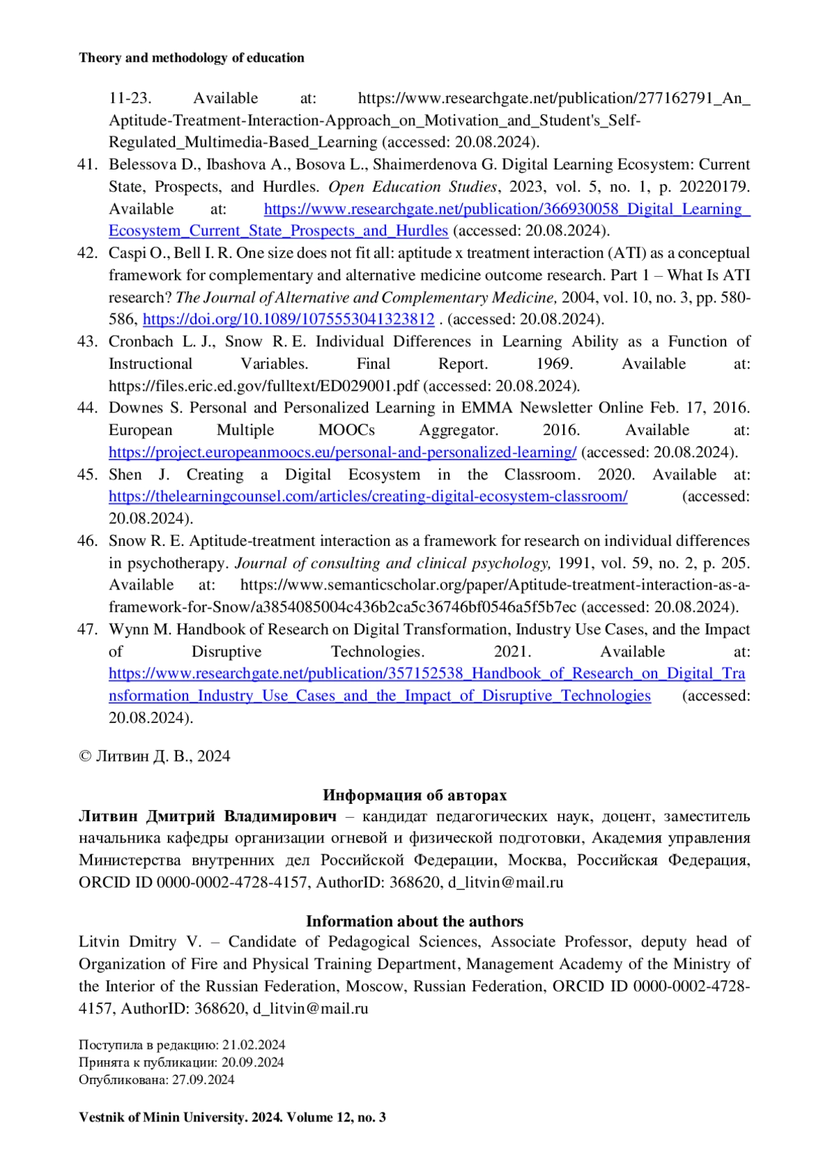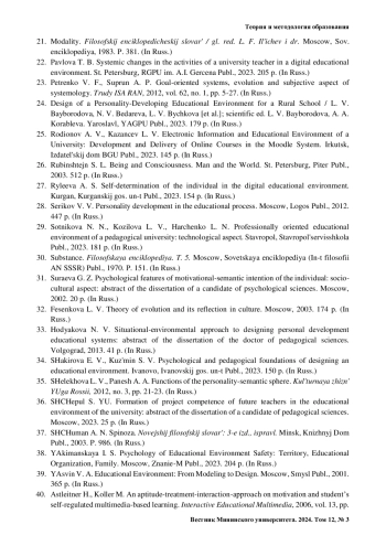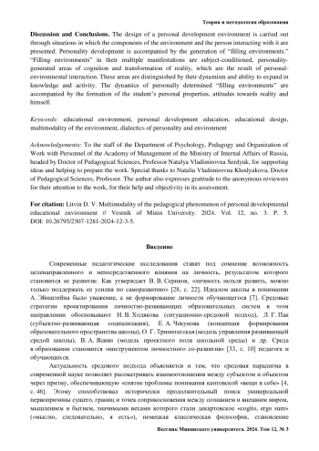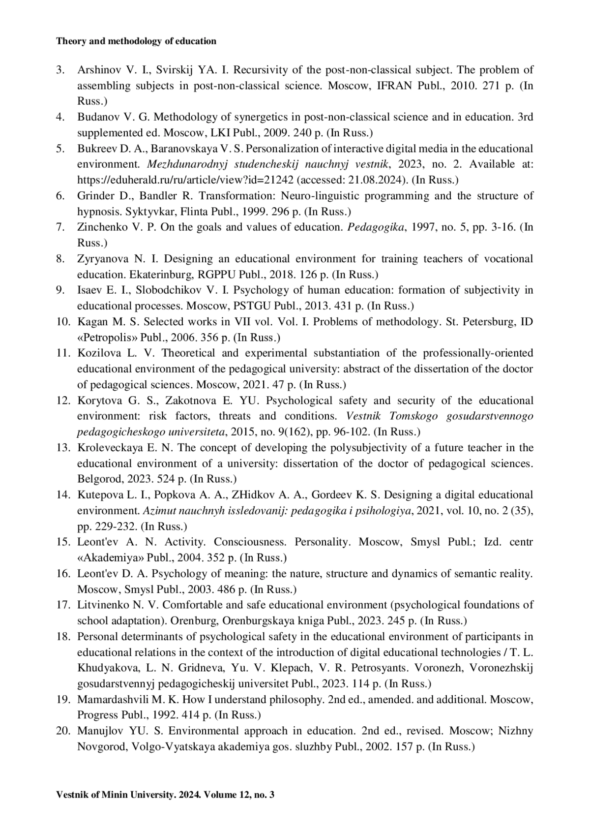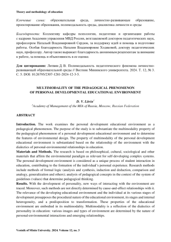 ЛИТВИН Д. В. ПОЛИМОДАЛЬНОСТЬ ПЕДАГОГИЧЕСКОГО ФЕНОМЕНА ЛИЧНОСТНО-РАЗВИВАЮЩЕЙ ОБРАЗОВАТЕЛЬНОЙ СРЕДЫ // ВЕСТНИК МИНИНСКОГО УНИВЕРСИТЕТА. 2024. ТОМ 12, № 3