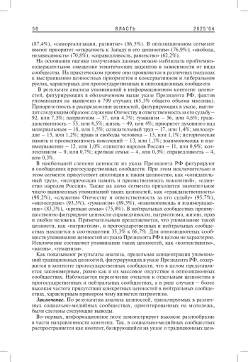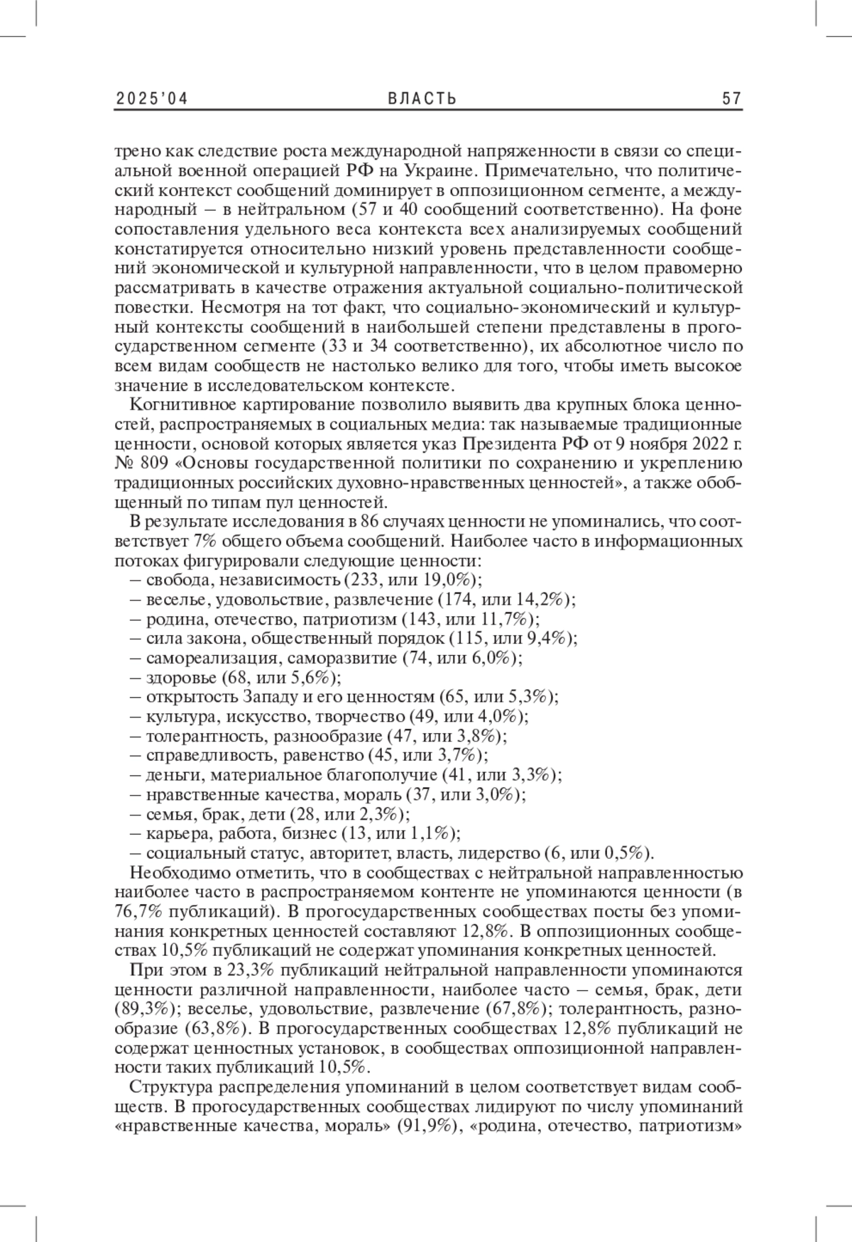 ДАВЫДОВА М. А. СОЦИАЛЬНЫЕ МЕДИА КАК ИСТОЧНИК ЦЕННОСТНЫХ УСТАНОВОК СОВРЕМЕННОЙ РОССИЙСКОЙ МОЛОДЕЖИ // ВЛАСТЬ. 2025. ТОМ 33 № 4