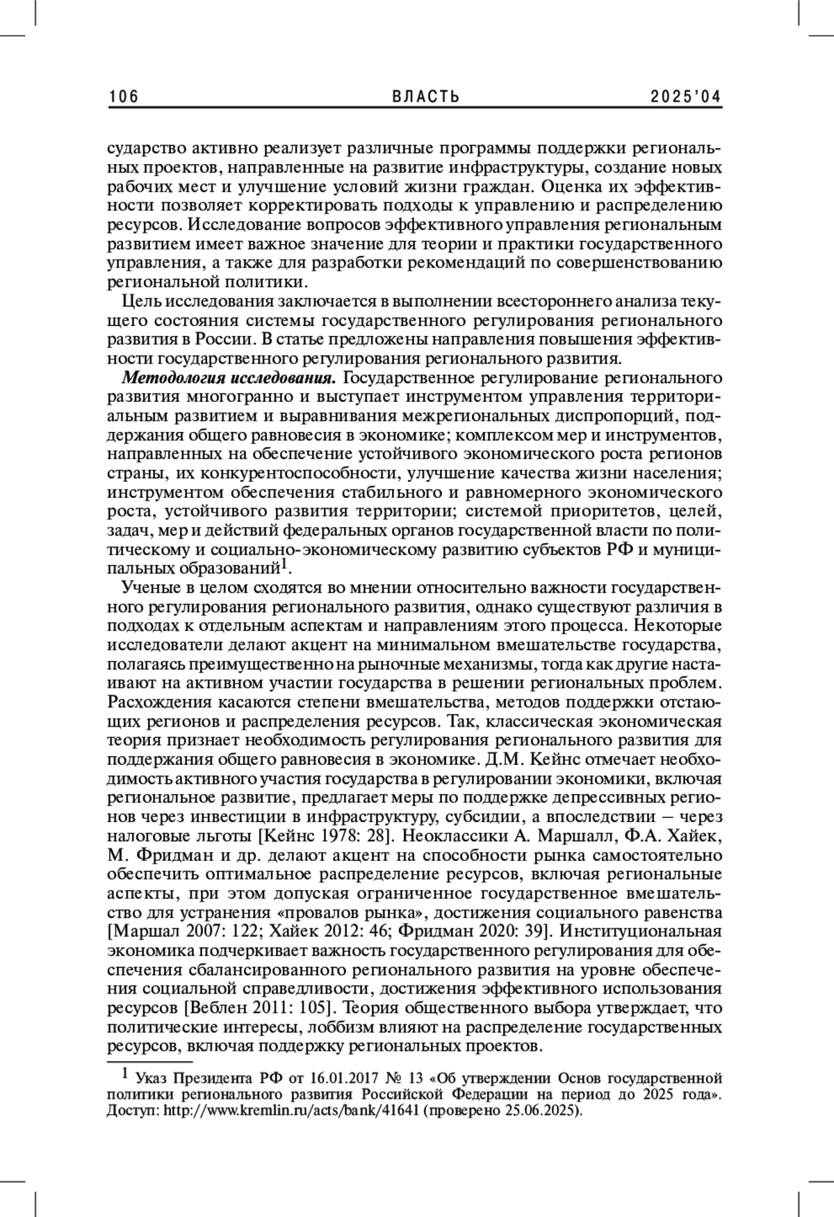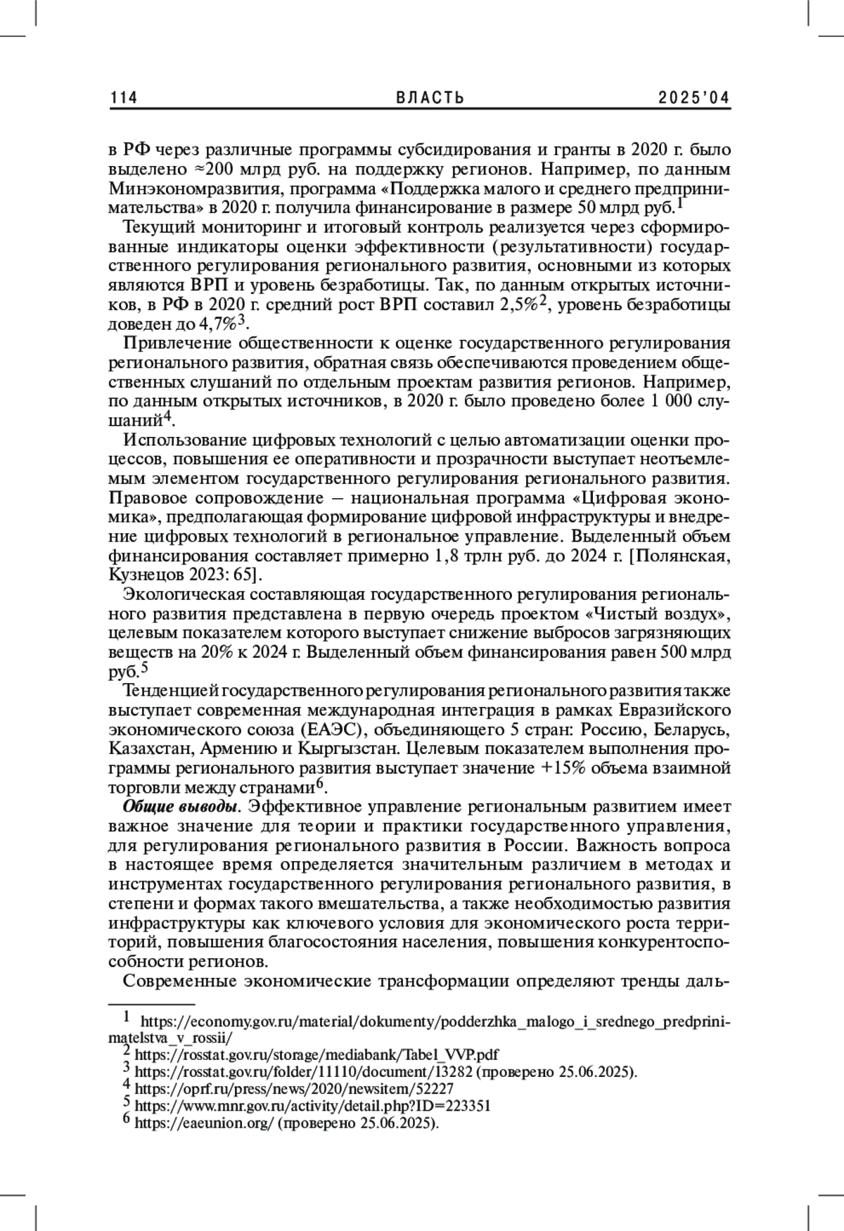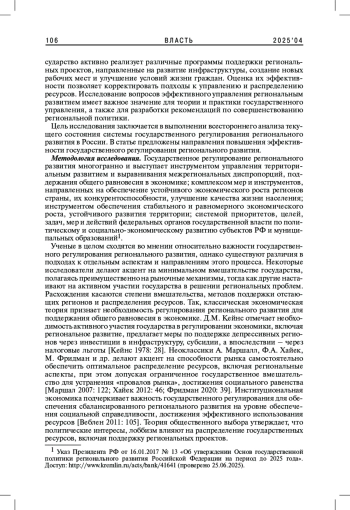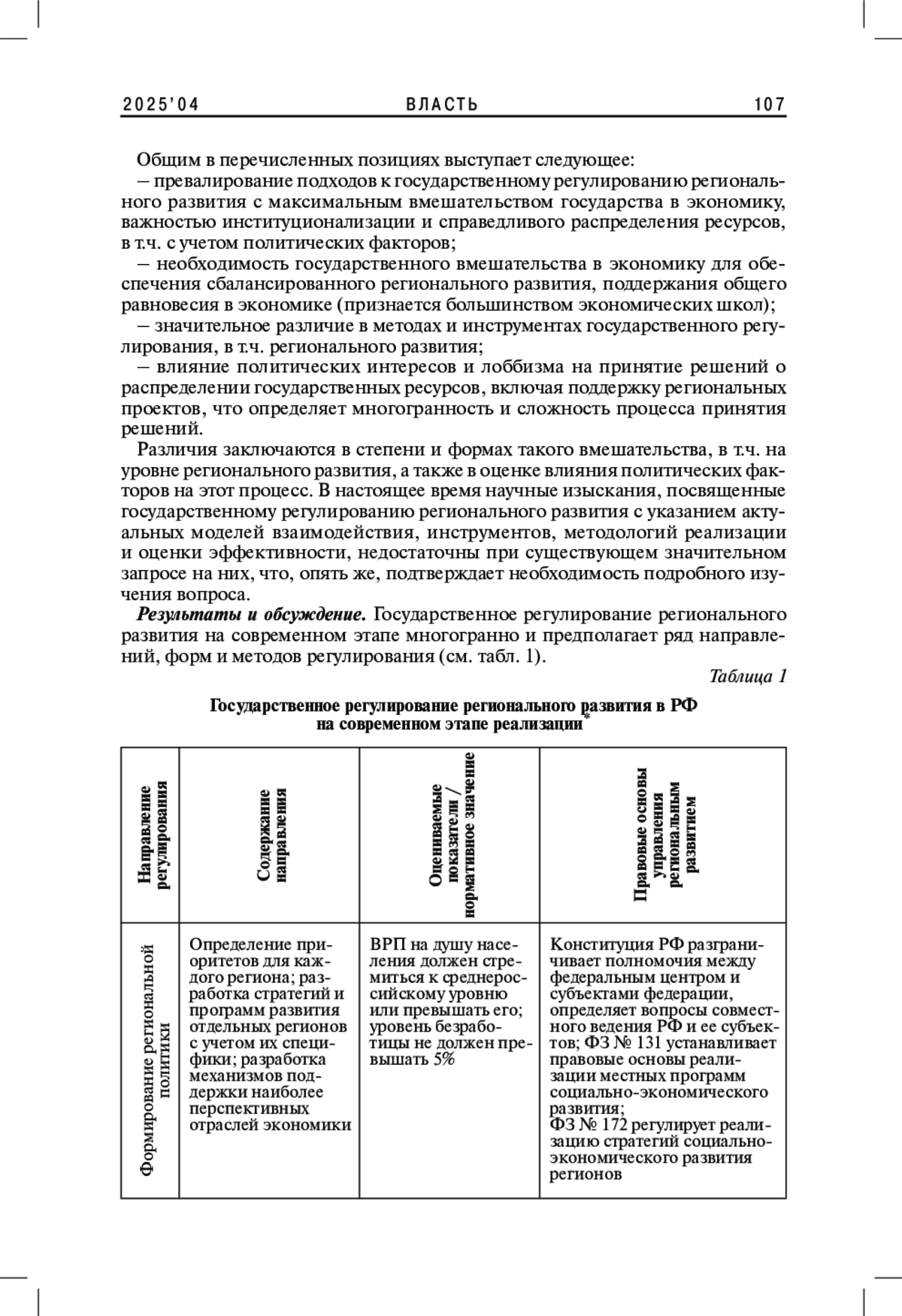 БАНТОС С. А. ГОСУДАРСТВЕННОЕ РЕГУЛИРОВАНИЕ РЕГИОНАЛЬНОГО РАЗВИТИЯ В УСЛОВИЯХ СОВРЕМЕННЫХ ЭКОНОМИЧЕСКИХ ТРАНСФОРМАЦИЙ // ВЛАСТЬ. 2025. ТОМ 33 № 4