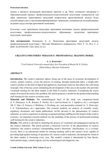 18. Молчанов И. Н. Творческие индустрии: механизмы развития человеческого потенциала // Экономика. Налоги. Право. 2022. Т. 15, № 2. С. 52-62. https://doi.org/10.26794/1999-849Х-2022-15-2-52-62.