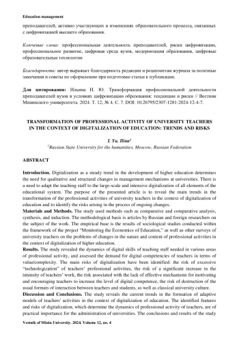 11. Готская И. Б., Готская А. И. Цифровизация и цифровая трансформация вузов: уточнение понятийного ряда, особенности, проблемы // Современное образование: традиции и инновации. 2023. № 1. С. 12-17. https://doi.org/10.51623/23132027_231_12.