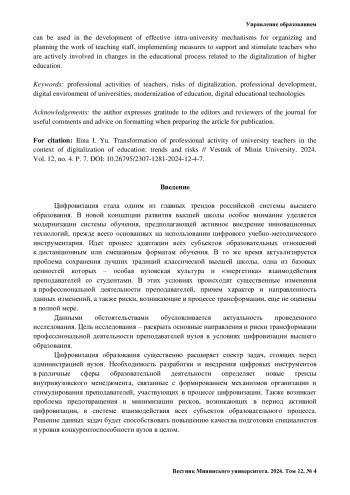 20. Половнев А. В., Соловьев С. С., Дмитриева М. М. Отношение преподавателей вузов к цифровизации и использованию электронной информационной образовательной среды (на примере исследования в Московском государственном лингвистическом университете) // Вестник Московского государственного лингвистического университета. Общественные науки. 2022. № 3 (848). С. 83-92. https://doi.org/10.52070/2500-347X_2022_3_848_83.