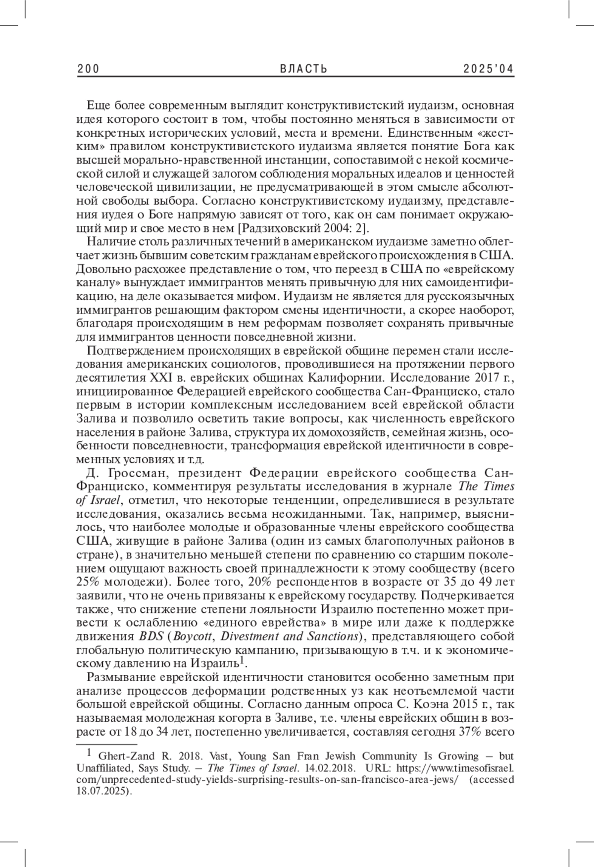 Статья: ПРИЧИНЫ РАЗМЫВАНИЯ ЕВРЕЙСКОЙ ИДЕНТИЧНОСТИ В СОВРЕМЕННЫХ США (ДЕСЕКУЛЯРИЗАЦИЯ И СМЕШАННЫЕ БРАКИ) (2025)