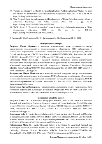 Обсуждение и заключения. Проблемы учета обучающихся в форме семейного образования характерны не только для России. Разработка методологии сбора данных об обучающихся – ключевая задача для образовательной политики и будущего регулирования семейного образования, поскольку рост востребованности семейного образования ставит перед системой образования новые задачи.