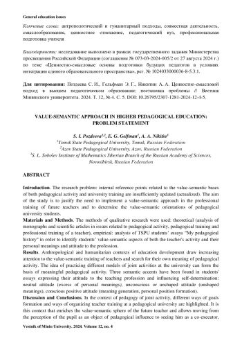Статья: Ценностно-смысловой подход в высшем педагогическом образовании: постановка проблемы (2024)