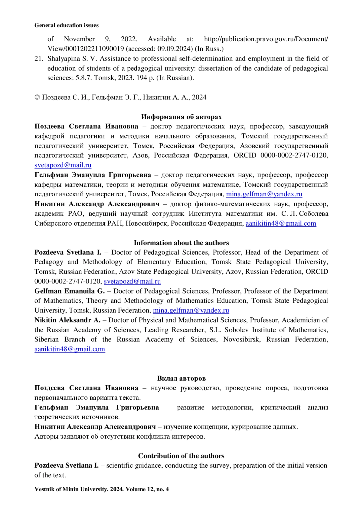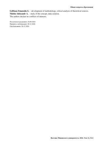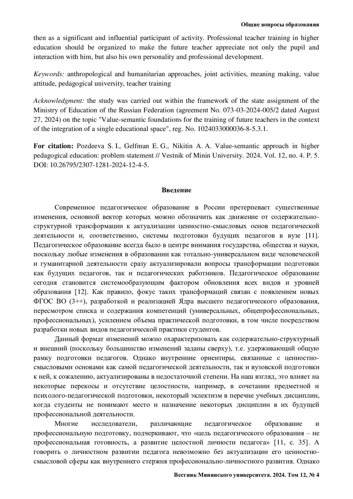 ПОЗДЕЕВА С. И., ГЕЛЬФМАН Э. Г., НИКИТИН А. А. ЦЕННОСТНО-СМЫСЛОВОЙ ПОДХОД В ВЫСШЕМ ПЕДАГОГИЧЕСКОМ ОБРАЗОВАНИИ: ПОСТАНОВКА ПРОБЛЕМЫ // ВЕСТНИК МИНИНСКОГО УНИВЕРСИТЕТА. 2024. ТОМ 12, № 4