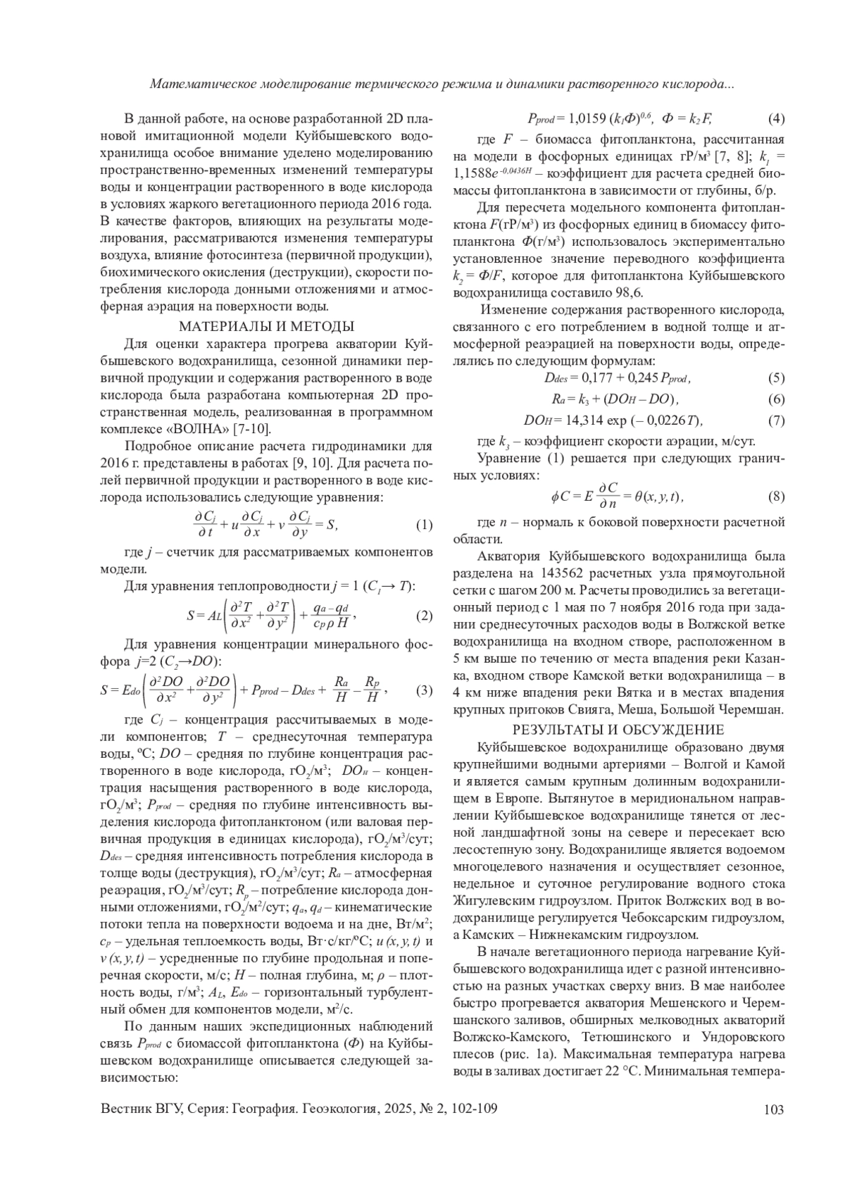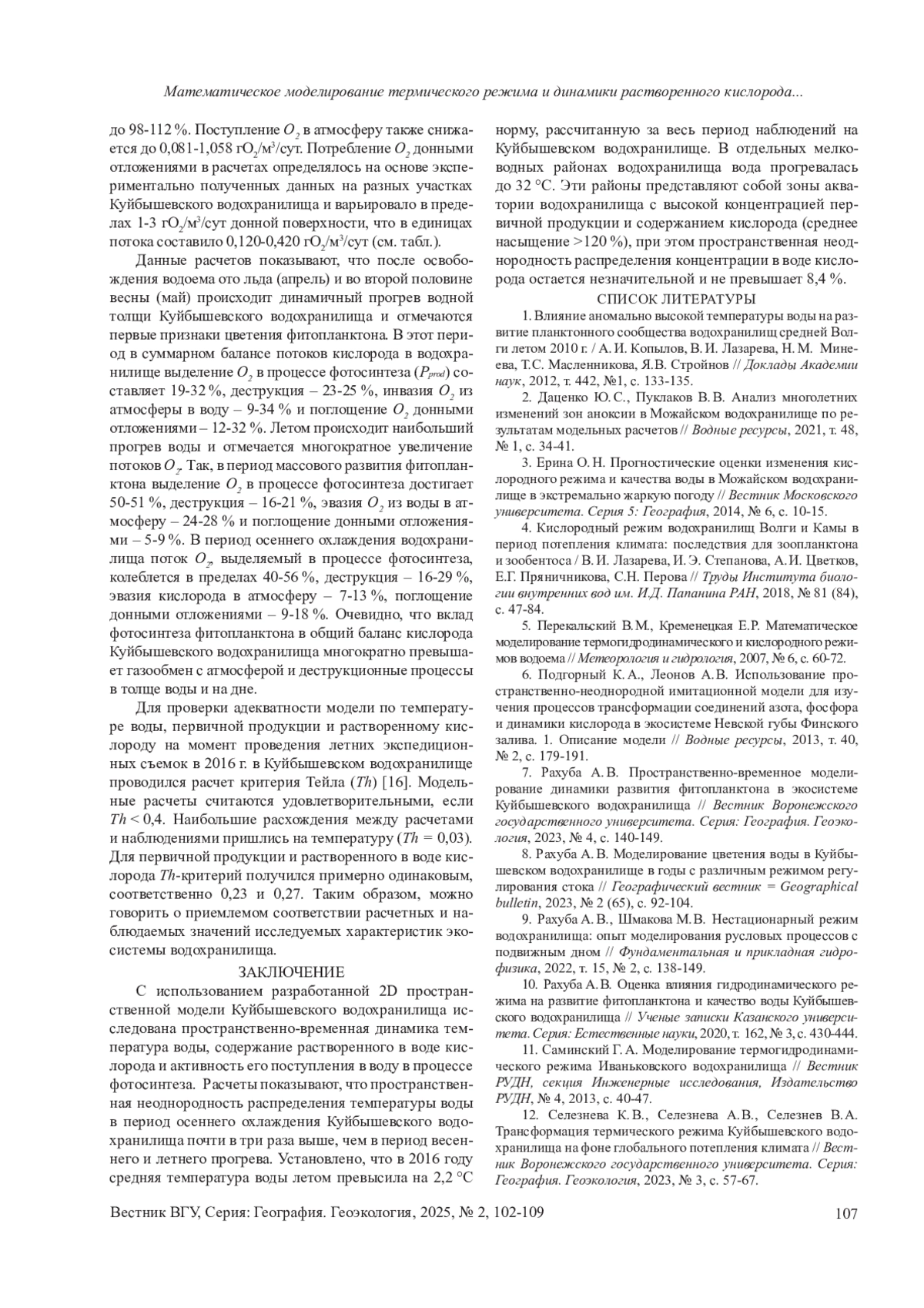 7. Рахуба А. В. Пространственно-временное моделирование динамики развития фитопланктона в экосистеме Куйбышевского водохранилища // Вестник Воронежского государственного университета. Серия: География. Геоэкология, 2023, № 4, с. 140-149. EDN: KQPXUO