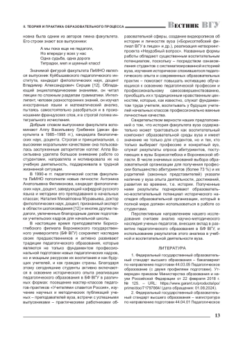 11. Плотникова Е. Е. Судьба вуза - в биографии его педагога / Е. Е. Плотникова, В. В. Горшкова // Вестник Воронежского государственного университета. Сер.: Проблемы высшего образования. -2023. - № 2. - С. 95-98.