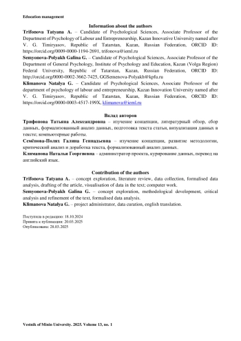 Обсуждение и заключения. В работе определена взаимосвязь между личностными качествами и защитными механизмами и тактикой поведения в конфликте. Обозначены направления учета личностных характеристик студентов специальности «Управление в технических системах» в процессе обучения в вузе.