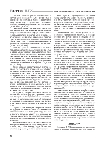 1. Монахов О. Н. Смысложизненные ориентации курсантов младших курсов военного вуза в решении проблемы становления профессиональной компетентности / О. Н. Монахов // Вестник НЦБЖД. - 2020. - № 3(45). - С. 55-65. EDN: VUBCXC