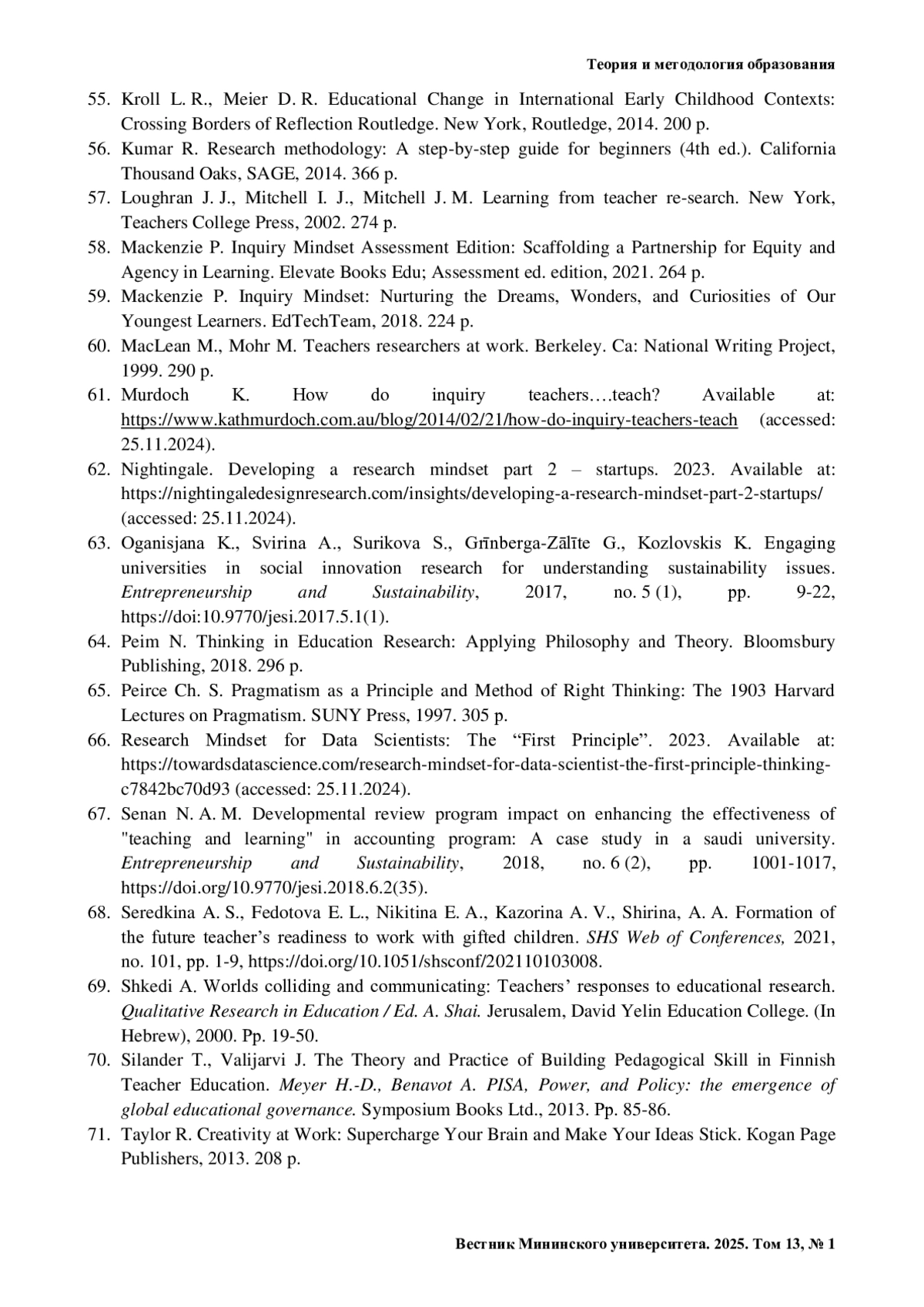 64. Peim N. Thinking in Education Research: Applying Philosophy and Theory. Bloomsbury Publishing, 2018. 296 p.