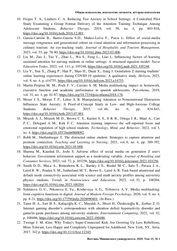 20. Soldatova G. U., Nikonova E. Yu., Koshevaya A. G., Trifonova A. V. Media multitasking: from cognitive functions to digital // Journal of Modern Foreign Psychology. 2020. Vol. 9, no. 4. Pp. 8-21. https://doi.org/10.17759/jmfp.2020090401.