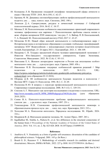 20. Соколов А. Г. Менталитет как категория исследования в педагогике и психологии. URL: http://www.rusnauka.com/18_NPM_2008/Pedagogica/34638.doc.htm (дата обращения: 20.01.2025).