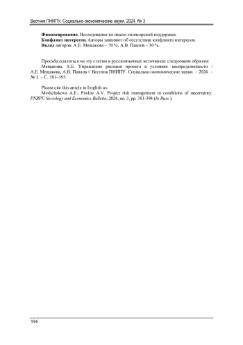 Представлена характеристика особенностей управления рисками проекта в условиях неопределенности. Определены усилившиеся в настоящее время проблемы экономики, что оказывает сдерживающее воздействие на устойчивость предпринимательского сектора и деятельность его субъектов. Обозначены сдерживающие факторы при разработке и реализации проектов по причине повышенных рисков, что требует выбора оптимальной методики реализации проектных решений. Важность реализации в процессе управления организацией практики проектного управления не вызывает сомнений, поскольку инвестиционные вложения дают возможность повышения инвестиционной привлекательности и, как следствие, стимулируют к развитию предпринимательской деятельности, расширению мощностей, обновлению и модернизации оборудования и т. д. Подчеркивается значимость адекватного управления рисками в проектах, особенно в условиях экономической неопределенности, которая усиливает важность выбора правильной методики для реализации проектных задач. Обоснована необходимость применения эффективных подходов к управлению рисками, что может способствовать повышению устойчивости и развитию предпринимательской деятельности, а также оптимизации инвестиционных процессов в условиях повышенной неопределенности. Выделена важность интеграции методов управления рисками в стратегическое планирование и управление проектами, особенно в сложившейся экономической ситуации. Применение систематического подхода к оценке и управлению рисками не только укрепляет позиции предприятий на рынке, но и способствует их долгосрочному развитию и конкурентоспособности. Предложены конкретные рекомендации по улучшению процессов управления рисками, что является критически важным для успешной реализации проектов и достижения стратегических целей организации в условиях неопределенности.