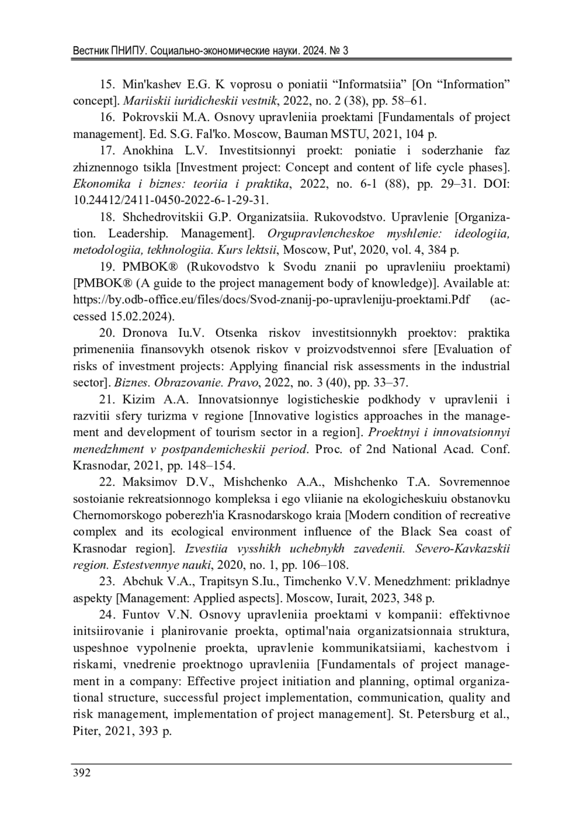 19. PMBOK® (Руководство к Своду знаний по управлению проектами) [Электронный ресурс]. - URL: https://by.odb-office. eu/files/docs/Svod-znanij-po-upravleniju-proektami.Pdf (дата обращения: 15.02.2024).