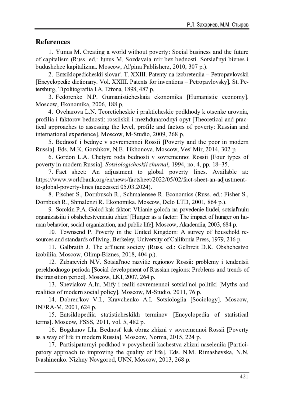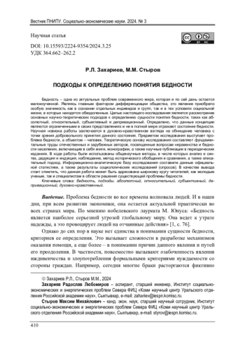 ЗАХАРИЕВ Р. Л., СТЫРОВ М. М. ПОДХОДЫ К ОПРЕДЕЛЕНИЮ ПОНЯТИЯ БЕДНОСТИ // ВЕСТНИК ПЕРМСКОГО НАЦИОНАЛЬНОГО ИССЛЕДОВАТЕЛЬСКОГО ПОЛИТЕХНИЧЕСКОГО УНИВЕРСИТЕТА. СОЦИАЛЬНО-ЭКОНОМИЧЕСКИЕ НАУКИ. 2024. № 3