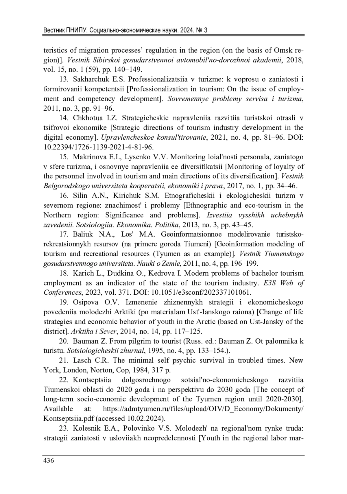 18. Karich, L. Modern problems of bachelor tourism employment as an indicator of the state of the tourism industry / L. Karich, O. Dudkina, I. Kedrova // E3S Web of Conferences. - 2023. - Vol. 371. DOI: 10.1051/e3sconf/202337101061 EDN: LJMTLB