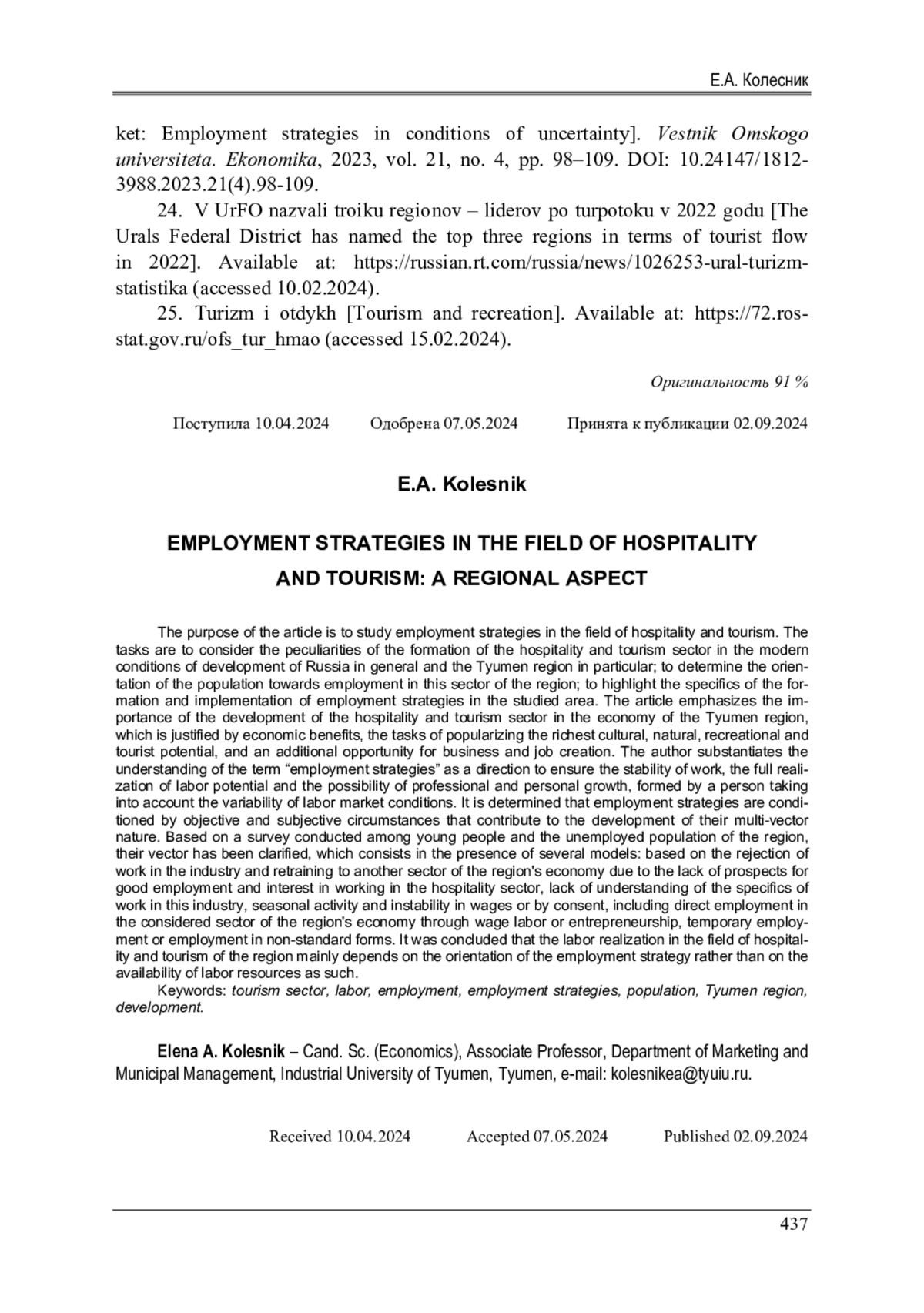 23. Колесник, Е.А. Молодежь на региональном рынке труда: стратегии занятости в условиях неопределенности / Е.А. Колесник, В.С. Половинко // Вестник Омского университета. Экономика. - 2023. - Т. 21, № 4. - С. 98-109. DOI: 10.24147/1812-3988.2023.21(4).98-109 EDN: IZSCJI