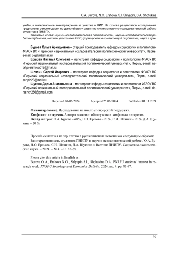 25. Popovich A.E. Samorealizatsiia studentov v nauchno-issledovatel’skoi deiatel’nosti kak professional’naia potrebnost’ [Self-realization of students in scientific research as a professional need]. Pedagogika i psikhologiia obrazovaniia, 2023, no. 2, pp. 44-55.