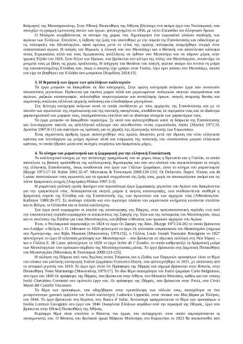 Многочисленные работы, изображающие людей и события греческой революции 1821 года, были созданы европейскими художниками, в основном французскими, немецкими и итальянскими. Работы связаны с эллинистическим движением в Европе и изображают моменты драматической интенсивности боевых действий, а также мирные моменты жизни после революции. Работы делятся на две категории: те, которые связаны с лидерами и бойцами, что придает им особые черты, и те, которые представляют собой изображения исторических событий. Идеализация греческой революции художниками французского и итальянского романтических течений, а также немецкого неоклассицизма представляет собой параллельное направление европейского художественного творчества, отражающее как события, предшествовавшие освободительной борьбе, так и события и личностей, стоявших у истоков революции 1821-1828 годов. в виде сцен и портретов, которые подчеркивают мирный ритм жизни после основания нового греческого государства.