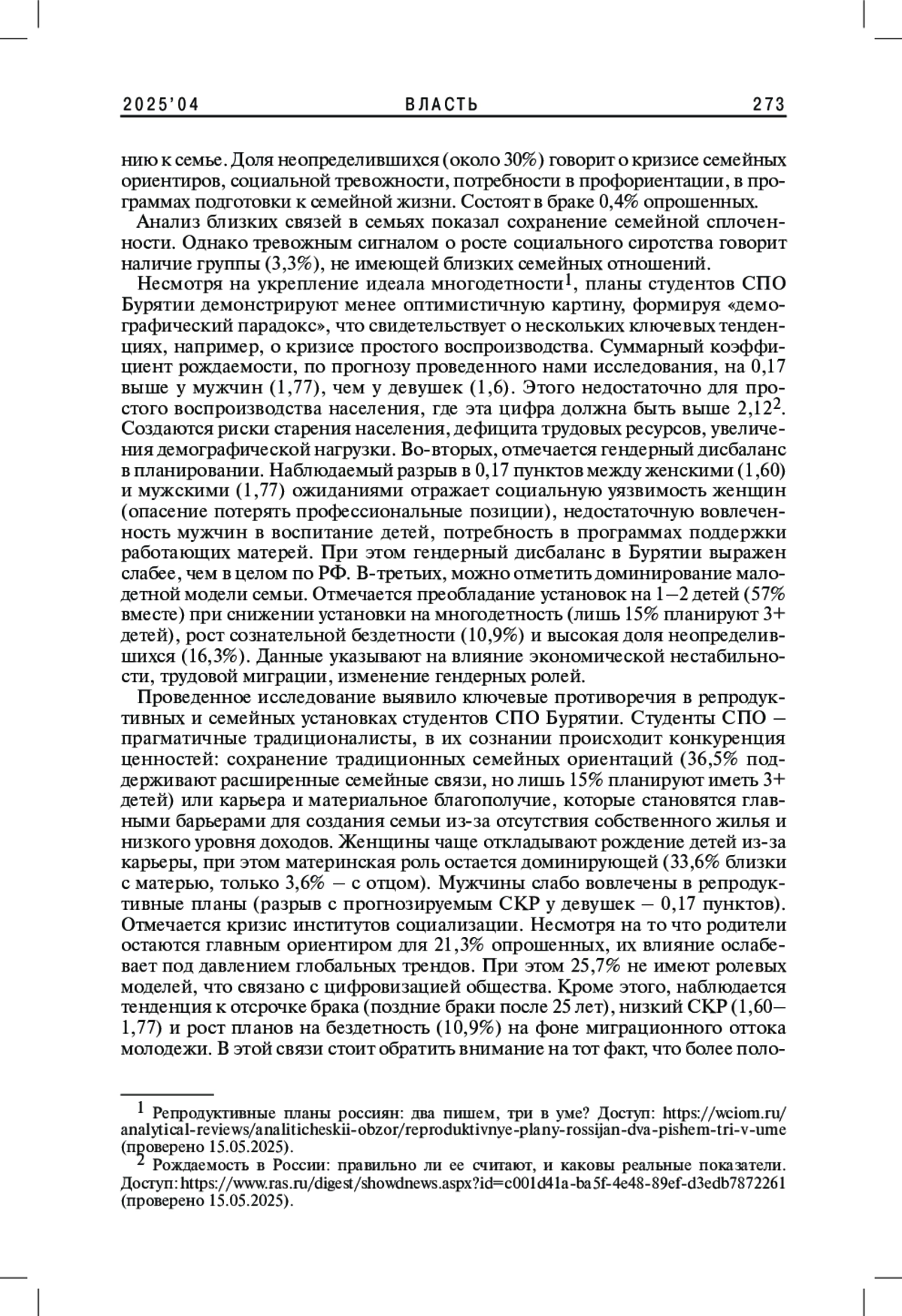 3. Устинкин С.В., Рудакова Е.К. 2024. Обеспечение демографического суверенитета России в условиях трансформации подходов ООН к институту семьи. - Власть. Т. 32. № 2. С. 132-138. EDN: TTHWYG