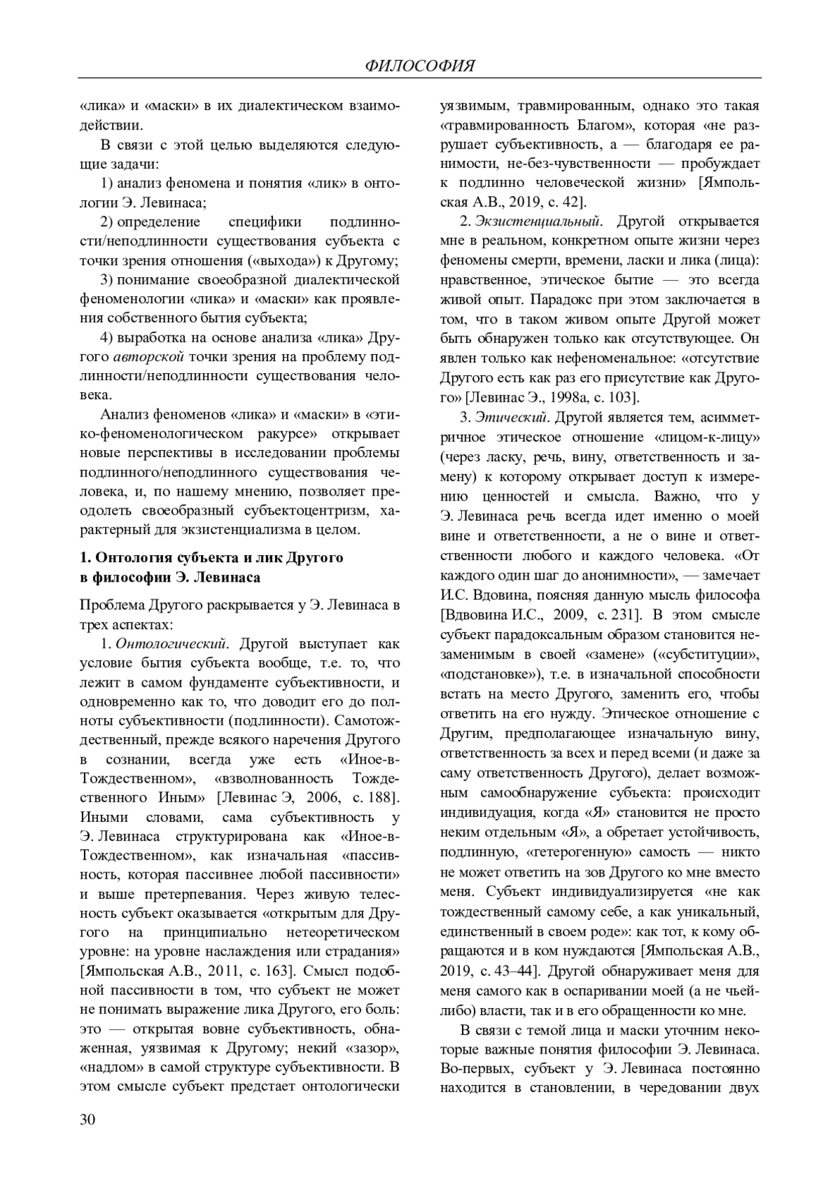 3. Евстропов М.Н. “Иное, чем бытие”: лицо в метафизике Эмманюэля Левинаса. Часть I: Черты лица // Вестник Томского государственного университета. 2011. № 342. С. 44-49.