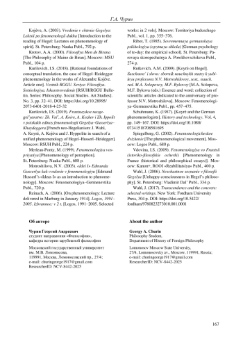 15. Курилович И.С. Рациональные основания концептуального перевода: случай феноменологии Гегеля-Хайдеггера в работах Александра Кожева. Статья первая // Вестник РГГУ. Серия: Философия. Социология. Искусствоведение. 2018. № 3. С. 32-41. DOI: 10.28995/2073-6401-2018-4-25-32 EDN: UJQPIB