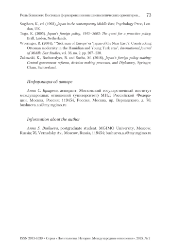12. Özçelik 2008 - Özçelik S. The Japanese foreign policy of the Middle East between 1904- 1998: Resource, trade and aid diplomacy // Humanity & Social Sciences Journal. 2008. Vol. 3. No. 2. P. 129-142.