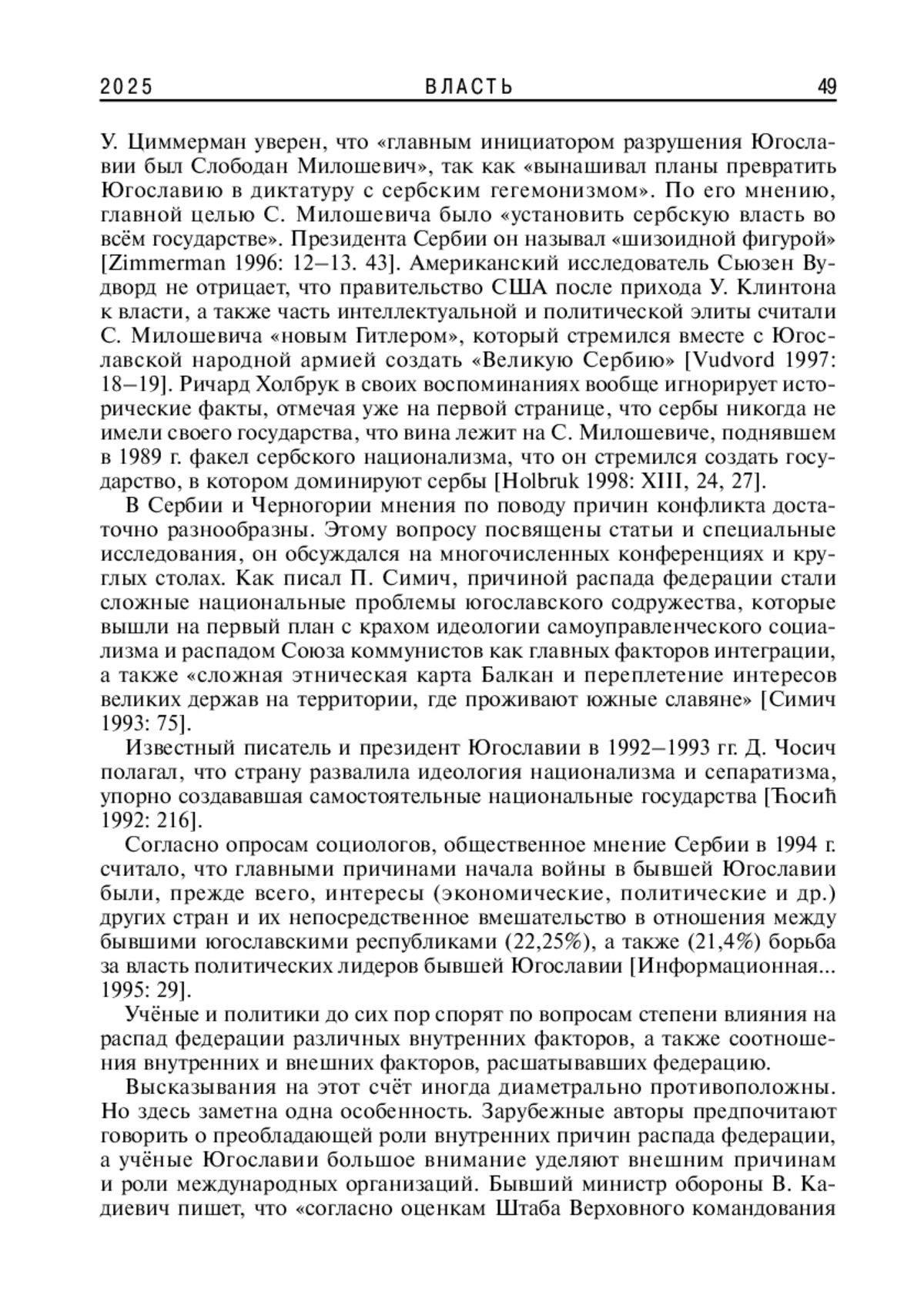 13. Симич П. 1993. Гражданская война в Югославии. Причины и следствия. - Международная жизнь. - М.: Июль. С. 75-83.